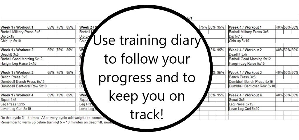 If you want to save your time and support this site, you can buy a training diary below (printable image and excel sheet). By using training diary, you can track your progress and maintain your motivation and you don’t need to remember the exercises by heart.